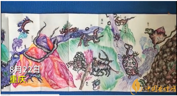 重慶10歲的陶飛羽暑期萌發了繪畫《山海經》故事的想法。媽媽介紹,陶飛羽畫《山海經》幾近“瘋狂”,20多天先后畫了36幅,畫卷長3.2米。除了畫《山海經》的奇花異獸和奇特風貌,陶飛羽還嘗試繪神話故事。