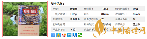 | 類型 :烤煙型 | 焦油量 :10mg | 煙氣煙堿量 :1mg | 一氧化碳量 :11mg |