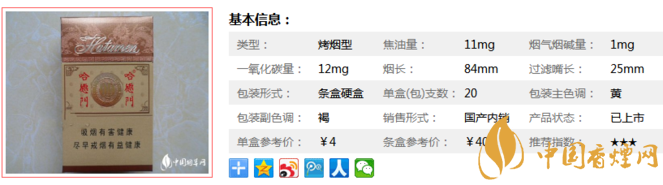 “精品哈德門(mén)”的設(shè)計(jì)在更從健康角度進(jìn)行了大量探索,汲取當(dāng)今降低焦油技術(shù)之精髓,其焦油含量有效地控制在12mg/支以下,吸食安全性更高。下面我們一起來(lái)看哈德門(mén)精品的參數(shù)信息:焦油量:11mg. 煙堿量:1mg. 一氧化碳量:12mg.