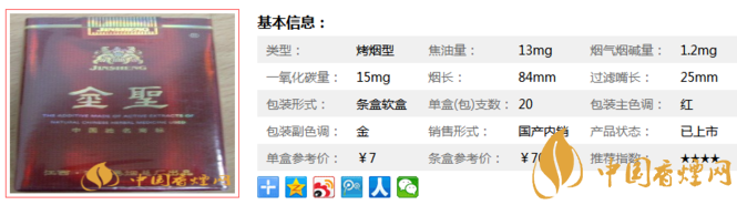 金圣東方香煙選用云南高原優質煙葉,結合世界最著名煙葉產區津巴布韋名貴煙葉,經天然山洞窖藏三年以上,配以美國進口香精香料,經國內著名煙草配方師歷時兩年研制而成。下面我們一起來看金圣東方的參數信息:焦油量:13mg. 煙堿量:1.2mg. 一氧化碳量:15mg.