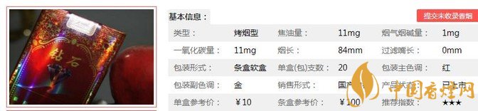 | 類型 :烤煙型 | 焦油量 :12mg | 煙氣煙堿量 :1mg | 一氧化碳量 :12mg |