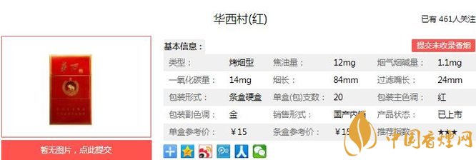 華西村紅傳承了蘇系香煙的特點(diǎn),以煙氣細(xì)膩柔和中,充滿著平和的醇厚感,征服了大量和煙客。在中國華西村香煙價(jià)格表圖中它們銷量好,口碑也非常不錯。經(jīng)香煙網(wǎng)小編市場調(diào)查華西村紅售價(jià)為15元/包。