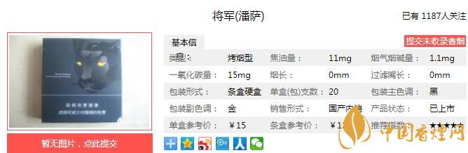雪茄型卷煙是雪茄和卷煙的融合之作,雪茄型卷煙既符合了年輕、時尚一族消費者新的消費需求,又具有鮮明的時尚個性和濃厚的雪茄風格。2010年,山東中煙就推出了一款極具創新風格的雪茄型卷煙 ——將軍(潘薩),在上市初期,就以鮮明的時尚個性和濃厚的雪茄風格成為了雪茄型卷煙市場的“新寵”,引領中式雪茄新風尚。下面就由香煙網小編帶大家一起來了解將軍潘薩的相關信息。