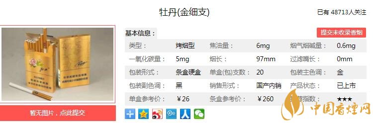 牡丹金細(xì)支多少錢一包 牡丹金細(xì)支口感及參數(shù)介紹