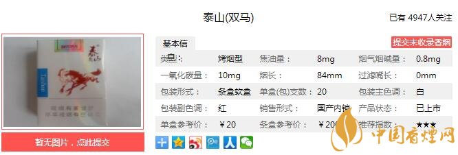 以上便是由香煙網小編為大家介紹的關于泰山雙馬煙價格 泰山雙馬8mg口感及參數分析的相關信息,想要了解更多有關內容請點擊:泰山香緣口感怎么樣 沉香與煙草本香相結合