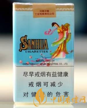 煙盒正面包裝以藍(lán)天白云為背景,從藍(lán)天灑下朵朵紅花,背面一位婀娜多姿的古代美女輕盈的站在白云之上,從花籃中灑下美麗的花朵,寓意著給民間帶來(lái)風(fēng)調(diào)雨順,國(guó)泰民安,與正背面金色的散花漢字以及SANHUA漢語(yǔ)拼音共同構(gòu)成了一幅美麗的賞心悅目的畫面。