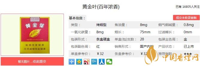 黃金葉白年濃香的煙葉是由襄城“百年煙莊”專供,1913年成功引種美國烤煙,完熟煙葉經600天自然醇化而成。同時也是第一款專線定制而成的高檔短支煙。銷售價格也只需要32元一包。