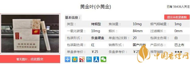 以上便是香煙網小編為大家介紹的關于黃金葉小黃金價格公道口感好,超過同價位香煙!的相關信息,看完之后大家是不是對于黃金葉(小黃金)這款香煙的相關信息更加了解呢。大家還想查詢更多的相關內容歡迎點擊:黃金葉百年濃香價格及口感分析,包裝依舊出色!
