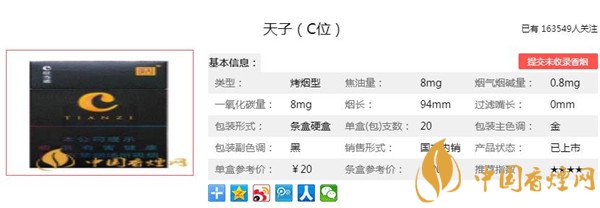 以上便是香煙網(wǎng)小編為大家介紹的關于天子C位香煙價格多少 天子C位香煙口感及參數(shù)介紹的相關信息,看完之后大家是不是對于天子(C位)這款香煙的相關信息更加了解呢。大家還想查詢更多的相關內(nèi)容歡迎點擊:嬌子金天子香煙官方價格表 嬌子金天子參數(shù)及口感