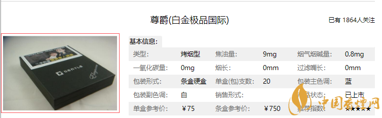既然是頂級產品,自然價格也不會低,這款香煙的價格大概是75元/盒!