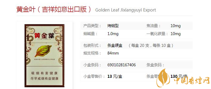 以上便是對黃金葉吉祥如意出口版香煙的價格及圖片介紹,希望為煙民提供幫助。小編在此告誡大家,抽煙對身體有傷害,希望大家盡早戒煙。想了解更多黃金葉香煙的相關內容,歡迎點擊:喜滿堂香煙好抽嗎 黃金葉喜滿堂價格及口感分析一覽