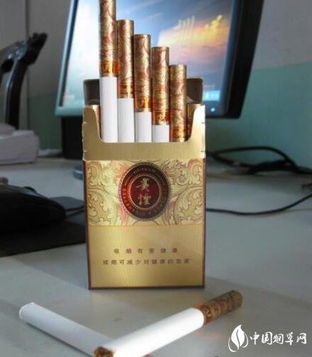 以金色為主色調,運用華貴富麗的金色纏枝紋鋪陳,雍容大氣,融會中西。煙盒正面翻蓋處印有棕色的龍鳳LOGO,外觀設計雍容具有靈氣,彰顯富貴氣度的同時又透射出沉靜內斂的神韻,展現出中國古代文化傳統的高貴格調。