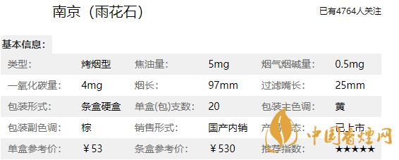 作為南京新一代高端細支煙代表產品,南京雨花石香煙價格零售為500元/條。有的地區南京雨花石香煙價格甚至已經成漲為零售價高達800元/條。南京雨花石和南京九五至尊的味道差不多,由于南京雨花石的細支設計,入口飽和感稍顯不足,對于老煙槍來說煙勁稍差點。