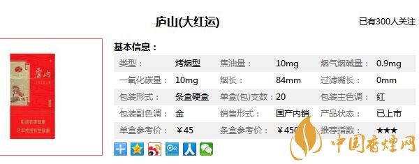 以上內(nèi)容是由香煙網(wǎng)小編為大家收集以及整理的關(guān)于,廬山大紅運(yùn)煙多少錢一包以及廬山大紅運(yùn)煙價(jià)格表 相關(guān)信息,想要了解更多信息詳情請(qǐng)點(diǎn)擊:長白山煙最貴多少錢一條。