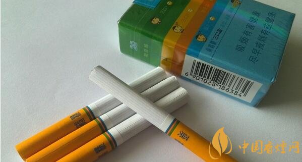 在軟三口品黃鶴樓價格圖片中,這款短支香煙外觀配色采用橙綠藍三種顏色,且分深淺,像是一件撞色條紋T恤,再加上極具現代化的時尚設計,給人一種青春洋溢之感,這款香煙的過濾嘴非常長,三口品不愧為這個名字。