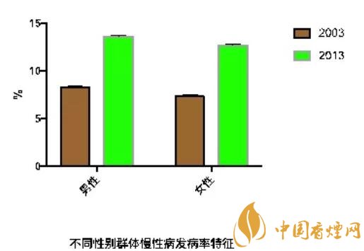 研究結(jié)果顯示,2003年,2008年以及2013年我國(guó)的煙民比例分別為26.0%,24.9%,25.2%,始終高居不下。2003年,男性煙民的數(shù)量相對(duì)較高(48.4%)。女性群體的煙民比例則相對(duì)較低(3.1%)。