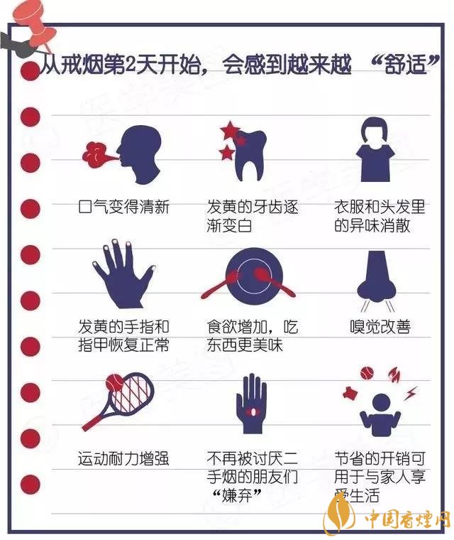 首頁是第一張,其中最大的感概是其中的口氣變得清新、衣服和頭發里的異味消散、食欲增加吃東西更美味這幾條。戒煙幾天后,不經意哈氣,感覺都有類似前女友的淡淡的口香了。其次,衣服被子都沒有煙味。冬天來了,沒有煙味的衣服被子讓自己很舒服。最近也吃得很多,自己挺瘦的,一直想增肥,所以吃多了很開心。因此一想到抽煙,這幾天上面這幾個美好的體驗頓時都要消失的話,想抽煙的想法會大大的打折扣。
