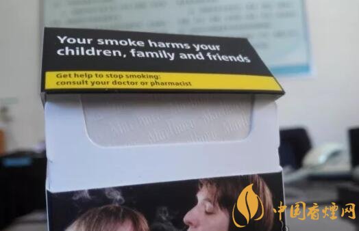 煙盒左右側面各印有黑框樣式的警示語句,也是后期歐盟版本萬寶路的煙盒包裝特點。