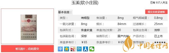 重點突出煙香的自然優(yōu)雅感,豐富細膩的香氣質感,強調煙氣醇和濕潤感和口感舒適性;莊園清香、清新自然,優(yōu)雅飄逸,柔綿溫潤,愉悅清新,彰顯獨具特色煙草本香。經香煙網小編市場調查玉溪軟小莊園售價為65元/包。