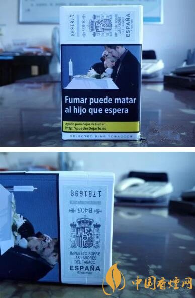 煙盒背面頂端貼制有西班牙的完稅標簽。