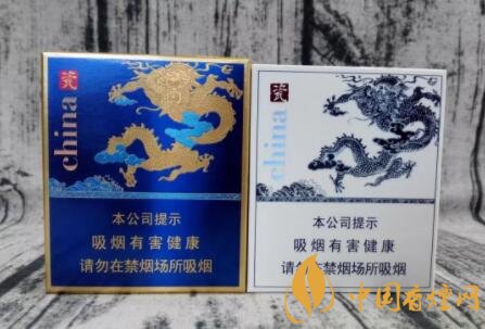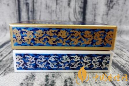 之所以此款china瓷為9+1系列,是指一條10盒香煙中,有一盒的包裝設計及口味,與余下九盒有所區(qū)別。圖片中深藍色澤包裝的,名為“龍王”。此種命名,乃是因十盒圖案皆為騰云祥龍而來。