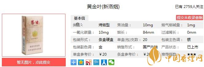 黃金葉新洛煙煙支長84mm,過濾嘴長25mm,十年磨一劍精品再現,專線生產十年經典,十年回歸。河南中煙研發的“新洛煙”經過精心設計,精益制造,精品再現。下面我們一起來看黃金葉新洛煙的參數信息:焦油量:10mg 煙堿量:1.0mg 一氧化碳量:10mg