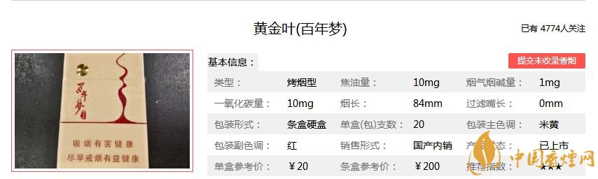 百年夢香煙好抽嗎?百年夢香煙價格是多少?黃金葉(百年夢)煙是河南中煙旗下黃金葉品牌推出的一款焦油含量10mg的烤煙型香煙。小編身邊有一些朋友很愛這款香煙。這款百年夢香煙多少錢一包?抽起來口感如何?下面我們一起來看看黃金葉百年夢價格參數(shù)介紹以及抽過的煙民對他的評價。