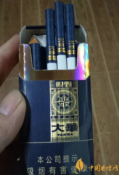 阿里山大華視野香煙的外包裝是非常精美的,且這個包裝還得了金獎!包裝主體采用深藍色做主基調(diào)顏色,以太陽眼作為煙標,深藍色搭配金色給人一種奢侈而又高貴的感覺!