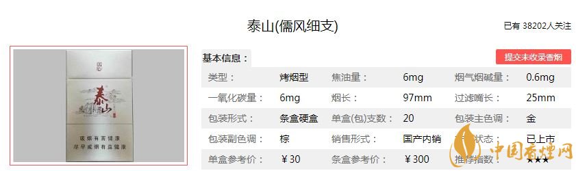 以上就是香煙網小編為大家介紹的泰山細儒風的價格參數與煙民的評價,希望為大家提供幫助。想查詢更多泰山細儒風的香煙信息,歡迎點擊:泰山儒風細支香煙介紹 泰山儒風價格及口感評測