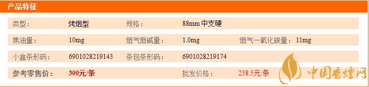 | 煙長:84mm | 過濾嘴長:25mm | 包裝形式:條盒硬盒 | 單盒(包)支數:20 |