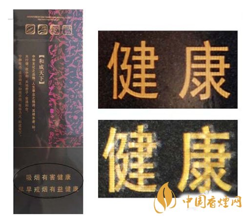 真煙采用超細線防偽,線條交叉處條紋清晰,不粘連;假煙超細線處印刷粗糙,交叉處粘連、模糊。