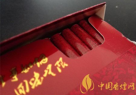 文中此款的包裝,相比于之前紅黃兩色,變?yōu)榱巳t色調(diào)??v觀此版細(xì)支硬紅的色澤樣式,更像是已經(jīng)停產(chǎn)了的會堂品牌曾經(jīng)的高端之作盛世典藏的細(xì)支款,尤其是大紅底色中的牡丹花紋狀圖案的運用。