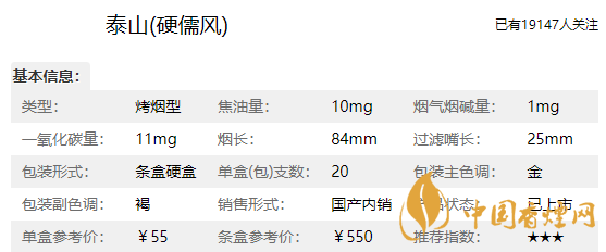 泰山香煙硬儒風是山東中煙在世界范圍內繼承和弘揚儒家文化的一種趨勢。依托文化大省的資源優勢,將儒家文化基因注入“泰山”品牌,并采用內向的產品設計。今天小編整理了泰山香煙硬儒風口感的相關信息,下面跟著小編來一起了解一下吧。