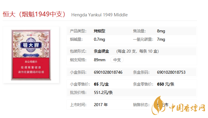 “恒大(煙魁1949中支)”煙支周長介于細支煙和常規煙之間,在吸味和滿足感上做到了均衡和統一。