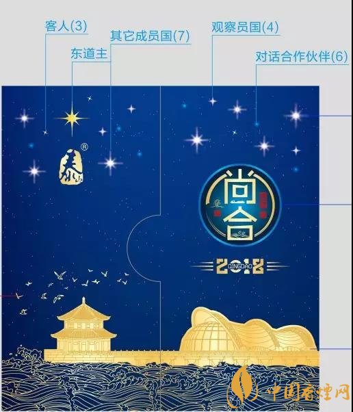 外包裝上印有18只海鳥共舞場景,代表著2018年第18次上合峰會,海鳥共舞也寓意著人與自然的和諧統一。點點繁星點綴在上方,代表著東道主、成員國、對話合作伙伴等和諧共處。