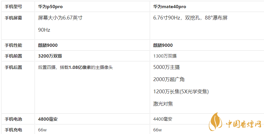 以上是小編整理的有關華為p50pro和mate40pro哪個性價比高的最新信息,相信在座的朋友們聽到小編的介紹有所認識,但是小編在這里提醒一句手機的整體配置再次升級,為用戶帶來更好的手機性能,但也要根據自身情況理性購買,更多最新最實用的資訊請持續關注香煙網。
