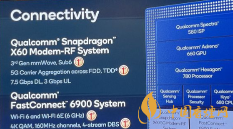 驍龍888移動平臺集成基于5nm工藝的高通第三代5G調制解調器及射頻系統,能夠支持5G FDD-TDD 6GHz以下頻段的載波聚合、支持5G TDD-TDD 6GHz以下頻段的載波聚合,同時,引入毫米波-6GHz以下聚合,理論速率高達7.5 Gbps的下載和3Gbps的上傳速率。當然,對消費者最利好的消息是,更小制程且集成在SoC當中的基帶,將會大幅削減5G鏈接的功耗,提供更優秀的設備續航。