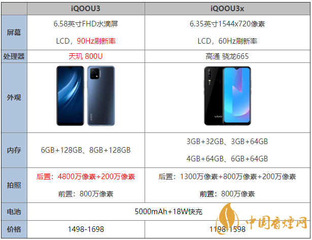 iQOOU3是iQOO旗下最新的5G智能機型,那么iQOOU3和iQOOU3x有什么區別呢,這兩款手機的差距大嗎,哪個更值得入手,下面香煙網小編將對iQOOU3和iQOOU3x參數進行進行對比介紹,感興趣的朋友一起來看看吧!