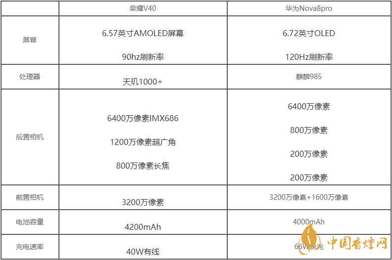 榮耀v40和華為nova8Pro都是中高端5g手機,通過網上曝光的參數配置來看,二款手機都是非常不錯的手機,那么榮耀v40和華為nova8Pro有什么區別?哪款手機更值得入手?下面香煙網小編將對榮耀v40和華為nova8Pro參數對比詳情進行介紹,一起來看看吧!