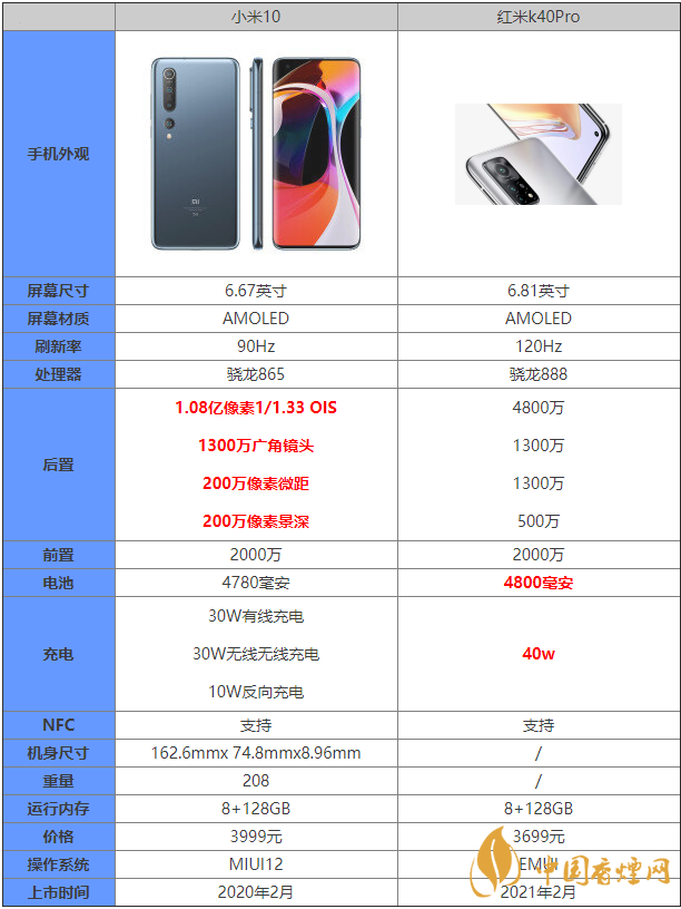 通過上面的介紹,相信大家對紅米k40pro和小米10有什么區別以及參數配置對比都有了一定了解了,希望對大家在選擇時有所幫助。了解更多實用手機相關咨詢,請關注香煙網。
