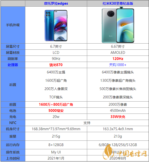 摩托羅拉edges和紅米K30至尊紀念版兩款手機的售價是非常相近的,那么在摩托羅拉edges和紅米K30至尊紀念版這兩款手機中到底是哪一款有著更加好的性能表現, 哪款手機更值得入手?下面香煙網小編將為大家介紹最新手機資訊,感興趣的朋友一起來看看吧!