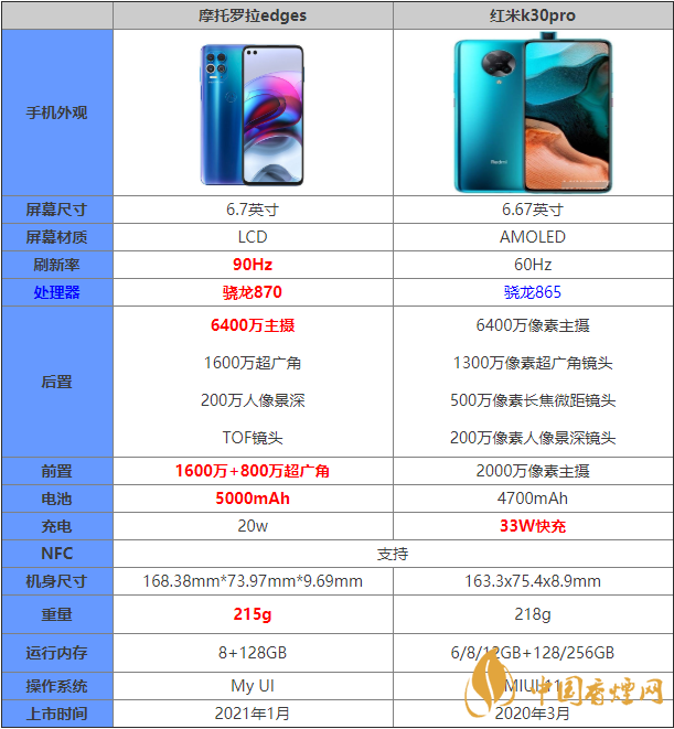 通過上面的介紹,相信大家對摩托羅拉edges和紅米k30pro參數對比以及哪款手機更值得入手都有了一定了解了,希望對大家在選擇時有所幫助。了解更多實用手機相關咨詢,請關注香煙網。