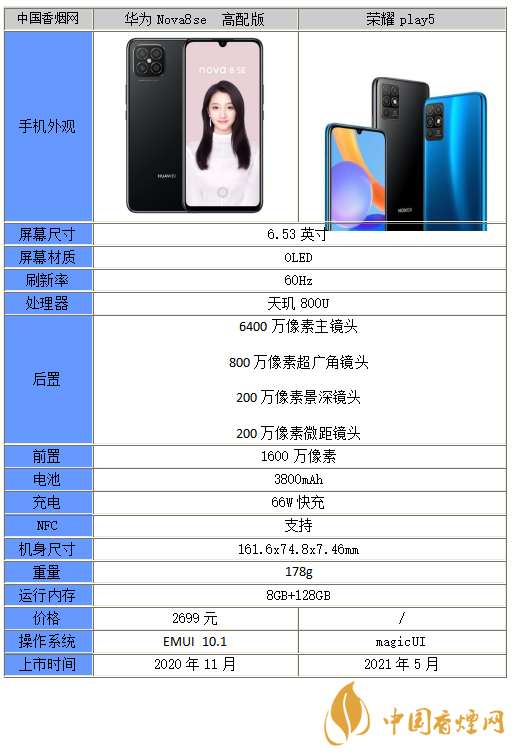 以上就是小編收集到的榮耀play5和華為nova8se高配版本區(qū)別在哪-應(yīng)該買哪個的相關(guān)內(nèi)容,以上內(nèi)容均來源于網(wǎng)絡(luò),僅供參考,一切以實(shí)際為準(zhǔn),更多最新數(shù)碼資訊請關(guān)注香煙網(wǎng)。