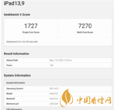 從微博博主“數碼閑聊”爆料的信息來看iPadPro2021單核得分:1727,多核得分:7270。