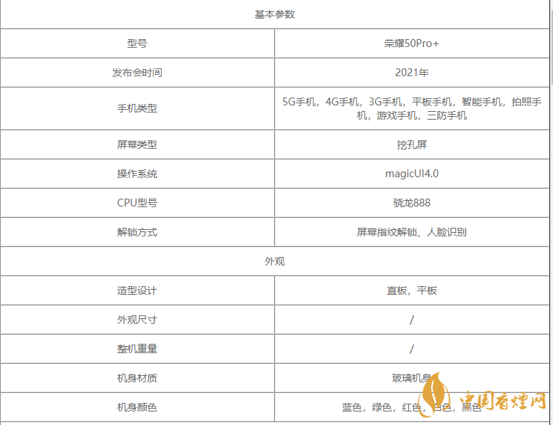以上是小編整理的有關榮耀50pro參數(shù)配置怎么樣-榮耀50pro參數(shù)詳細參數(shù)一覽的最新信息,相信在座的朋友們聽到小編的介紹有所認識,但是小編在這里提醒一句以上信息整合于網(wǎng)絡,更多最新最實用的資訊請持續(xù)關注香煙網(wǎng)。