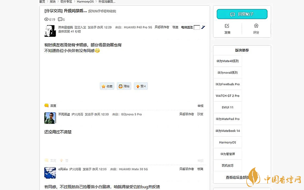 例如有使用華為P40Pro的用戶稱“有時候左右滑動有卡頓感,部分場景動畫也有”,同時也問其他用戶有沒有類似的情況。