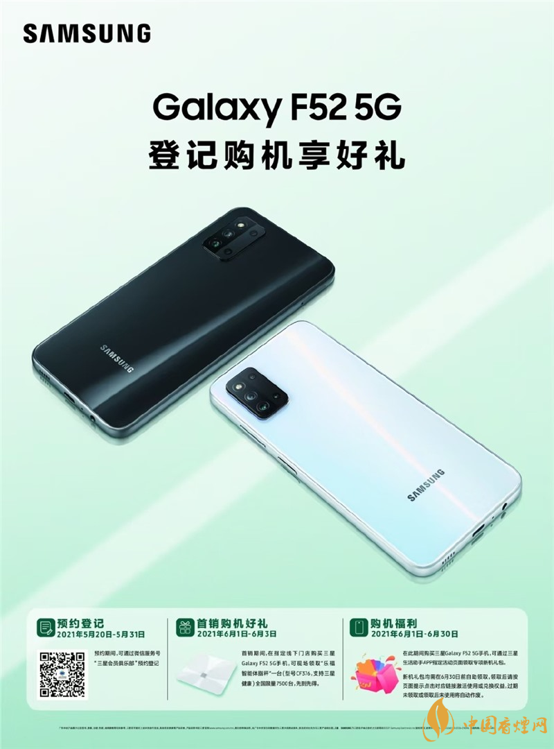 三星 Galaxy F52 5G 將于 5 月 20 日開啟國行預(yù)約,6 月 1 日正式開售,海報與真機(jī)圖已曝光。