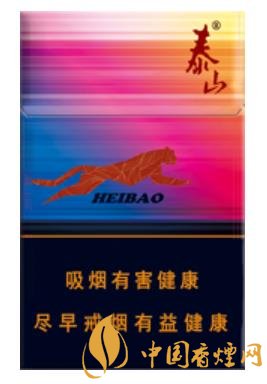 泰山(黑豹細支)售價為10元/包。熒光色的豹子和多彩主調,在夜場環境中創造強烈的視覺效果,雪茄煙身與金色短濾咀的搭配更顯華貴流暢。煙葉組份與香料的配伍十分和諧,雪茄原葉的摻配,令吸味協調,口感鮮明,突出雪茄本香,余味干凈。