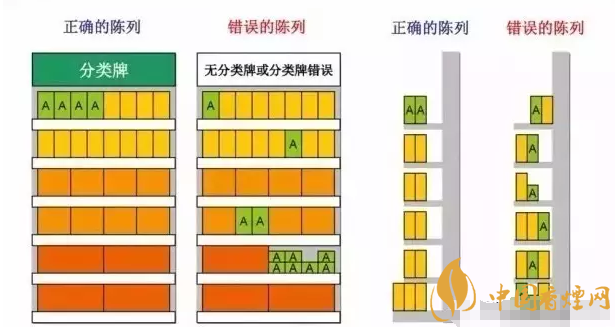 卷煙商品在柜臺、貨架上的陳列按照地域、品類、價格、包裝顏色等因素有規(guī)律的擺放,做到分類明確,重點(diǎn)突出,主次分明,井然有序,為消費(fèi)者節(jié)省時間,方便消費(fèi)者選購。
