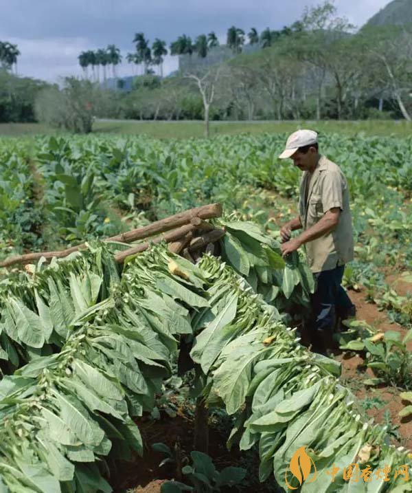 所以倉庫的技工們把煙葉晾在最接近地面處,然后因其陰干的速度,慢慢的、一層一層的,向倉庫的高處及深處移位,最后為了要調校至適合發酵的濕度,一排一排的煙葉又會再度往下移。整個過程歷時60天。正是因為這種追求天然真實的工序,使古巴雪茄的外皮葉上留下了綠斑。